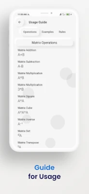 Matrix Calculator Pro Supports Following Calculations :- - Addition - Subtraction - Multiplication - Inverse - Det - Transpose - Matrix Equations