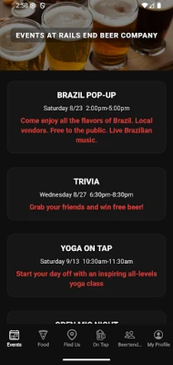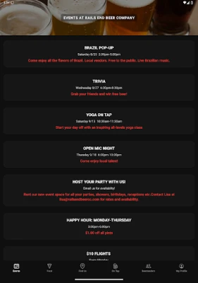 Rails End Beer Company Mobile App. Check what Events are upcoming, what food trucks are there, where you can find Rails beer and what beers are currently on tap at the brewery.