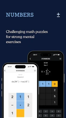 ★ NUMBERS: A crossword-like game for maths enthusiasts. Resolve the expressions, provided as clues, and insert the answer—or an expression of it—into the corresponding row or column.