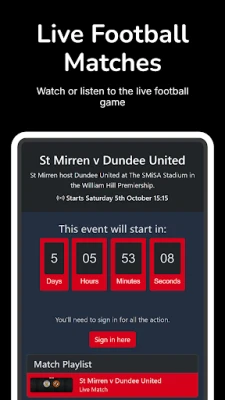Live Audio is available for each of our Championship games while in the UK, with Live video available for International Subscribers. All of our Pay Per View content streamed through the St Mirren TV app.