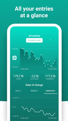Track your progress with consistent weigh-ins using your weight scale. See weekly averages to cut through daily fluctuations and get a true picture of your weight control.
